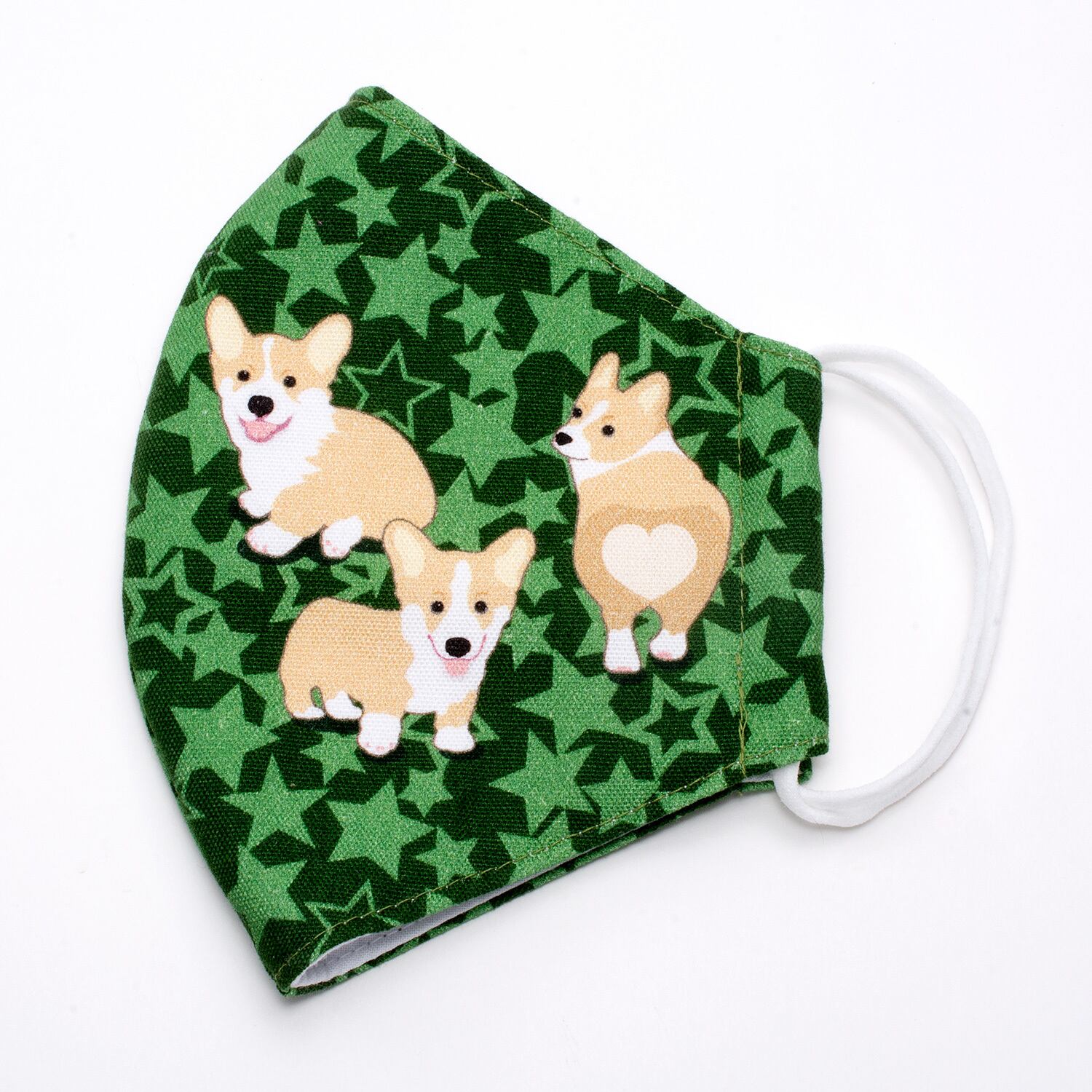 みんなが元気になるマスク 大人用 コーギー グリーン マスク 三層構造 抗ウイルス 抗菌 防臭 日本製 立体 EM-126G
