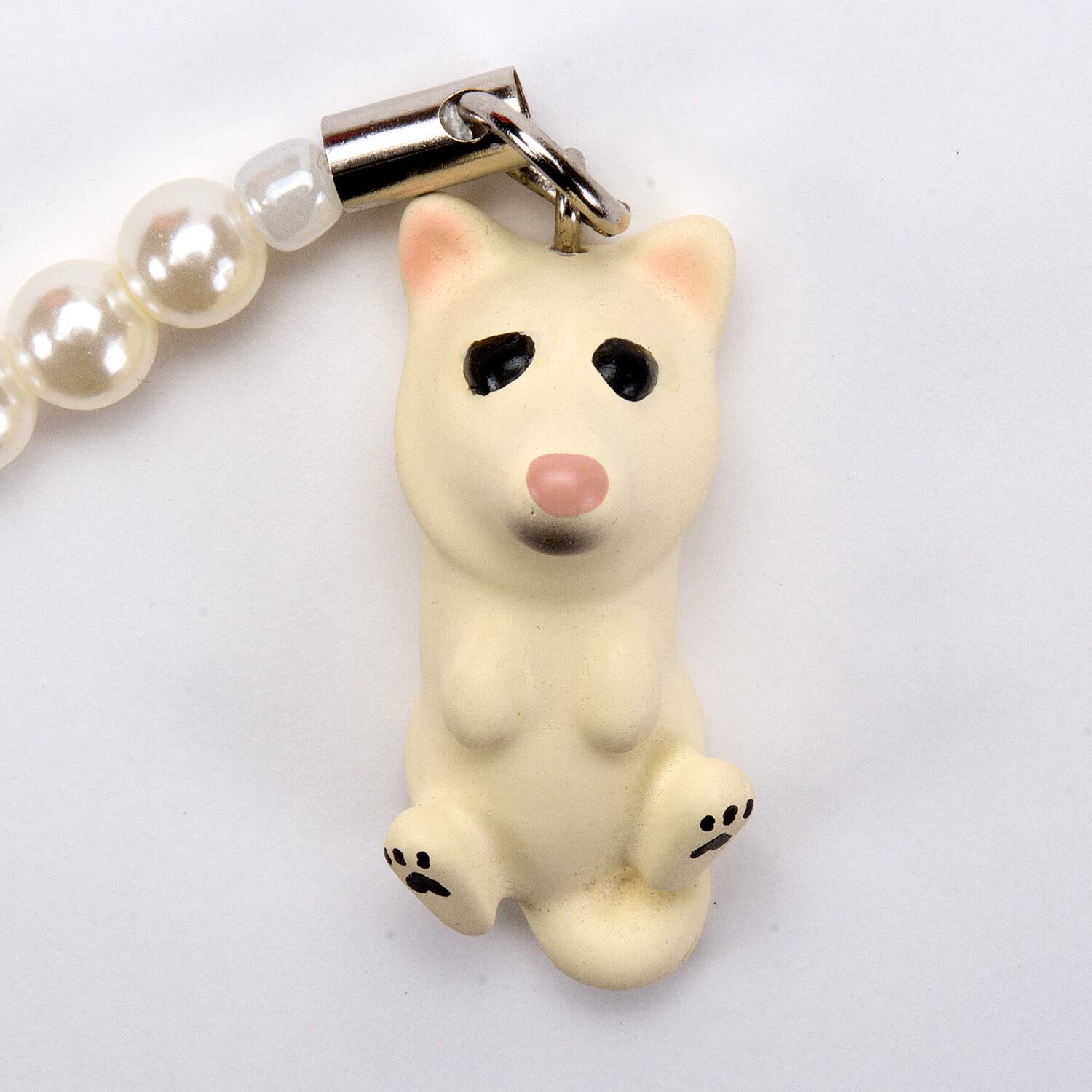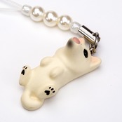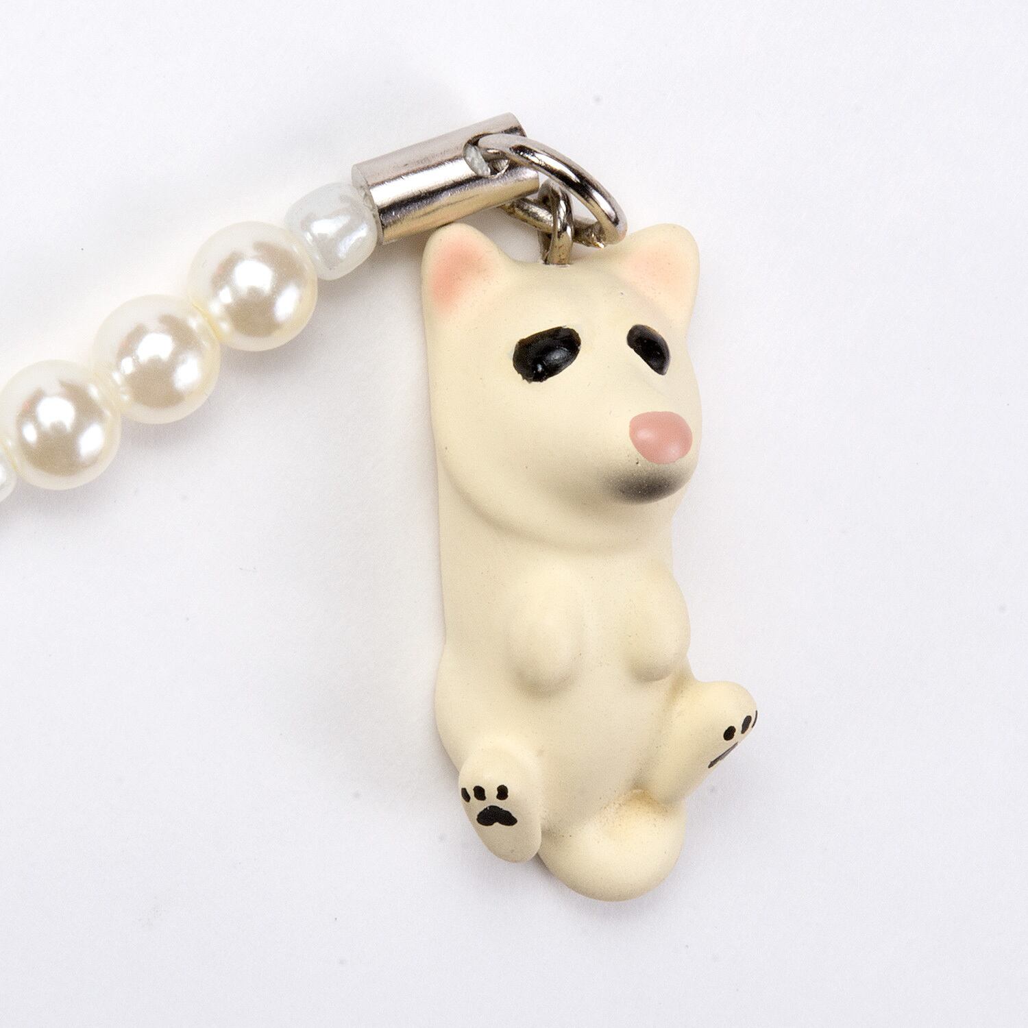Dog 92 Shiba 柴犬 白 ビーズ ストラップ DN-4002