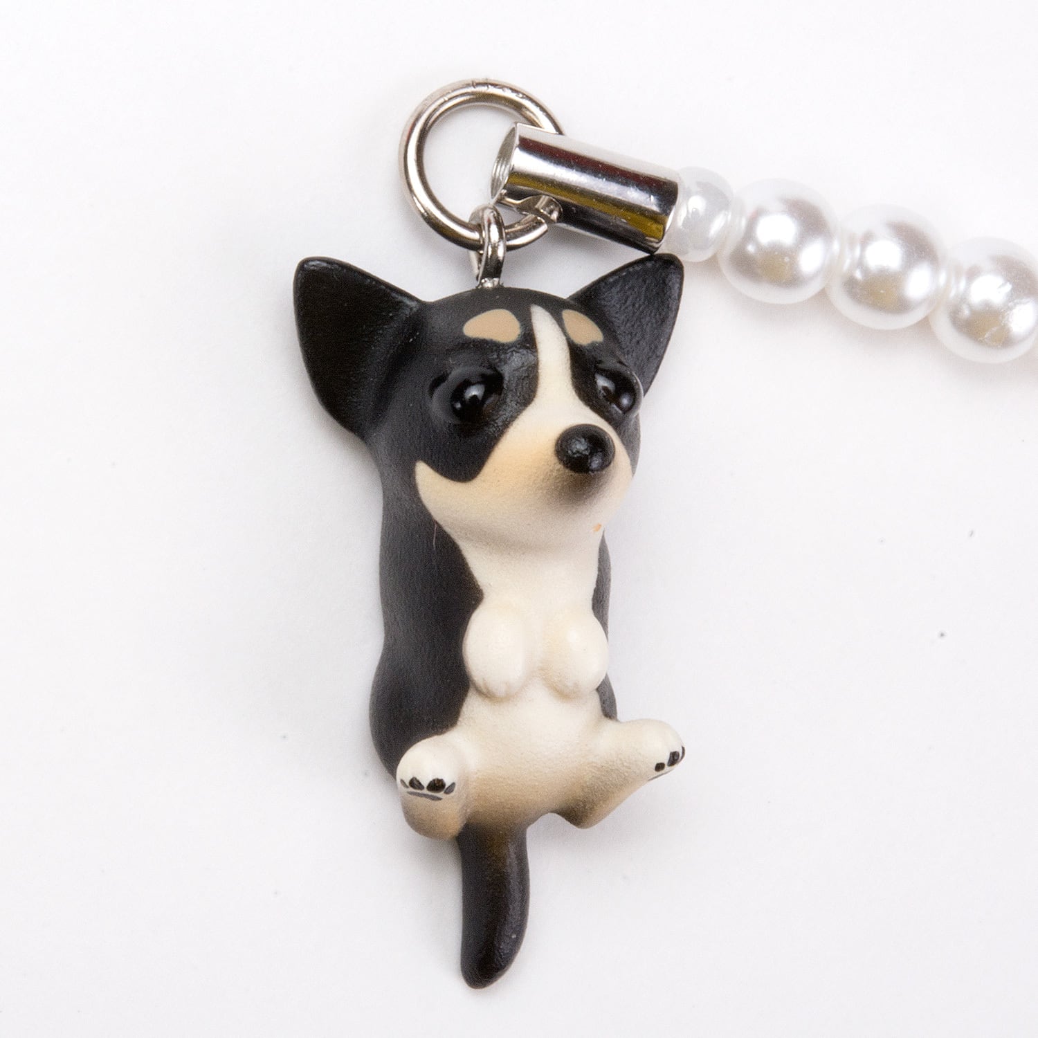 Dog 92 Chihuahua スムースコートチワワ ブラックホワイト ビーズ ストラップ DN-6003