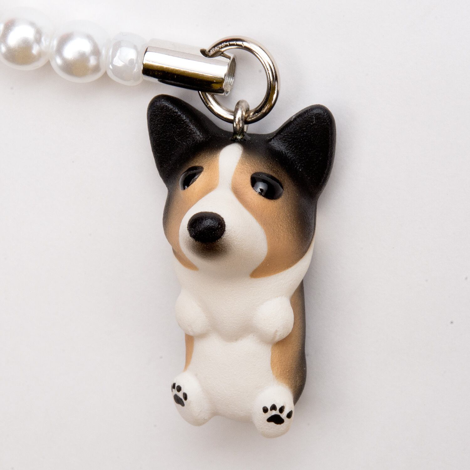 Dog 92 Corgi コーギー セーブルホワイト ビーズ ストラップ DN-7003