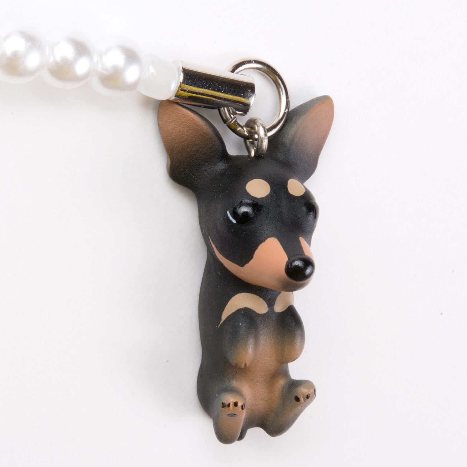 Dog 92 Miniature Pinscher ミニチュアピンシャー ブラックタン ビーズ ストラップ DN-2303