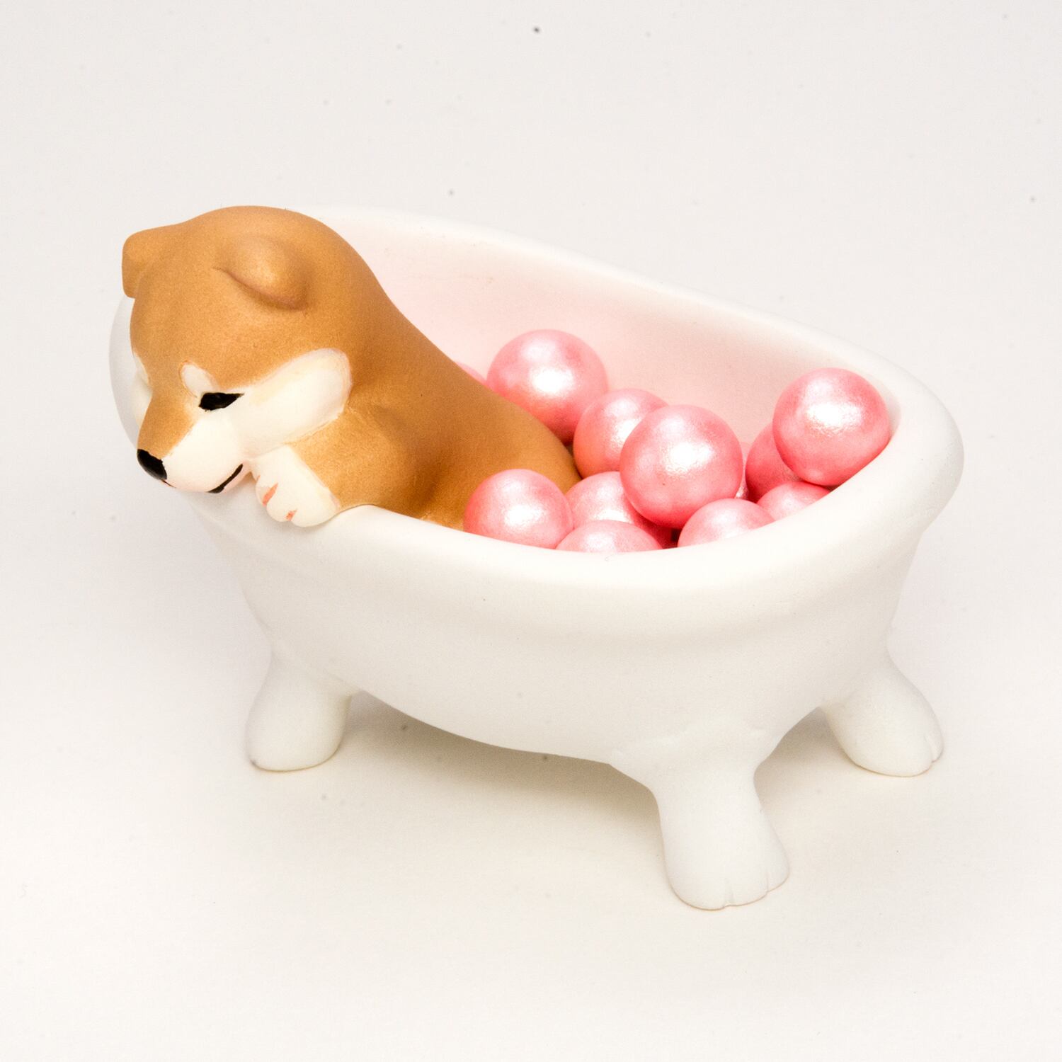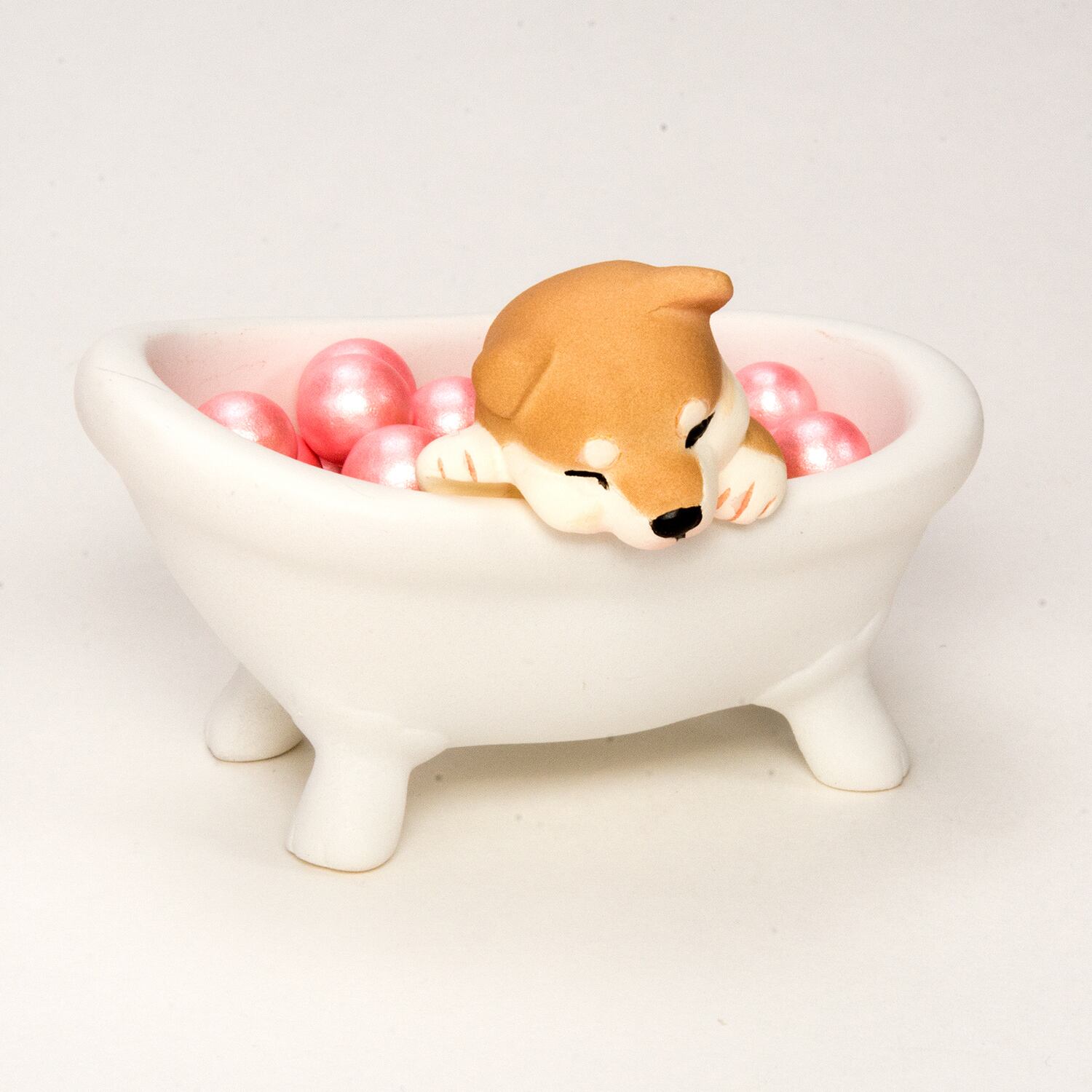 •バスタブサイズ:H30mm×W36mm×D57mm / 柴犬サイズ:H35mm×W23mm×D21mm