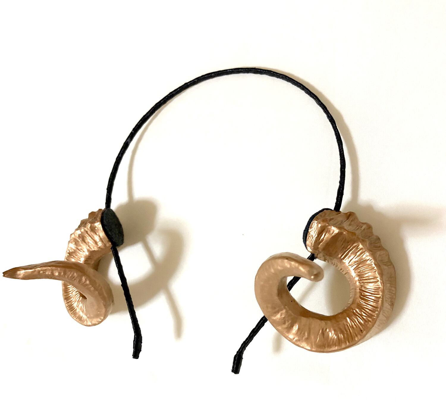 •くるりと巻いたシルエットの羊のようなツノに仕上げた樹脂製のカチューシャです。ゴールドで塗装し豪華にもクラシカルな雰囲気にも見えるよう仕上げました。