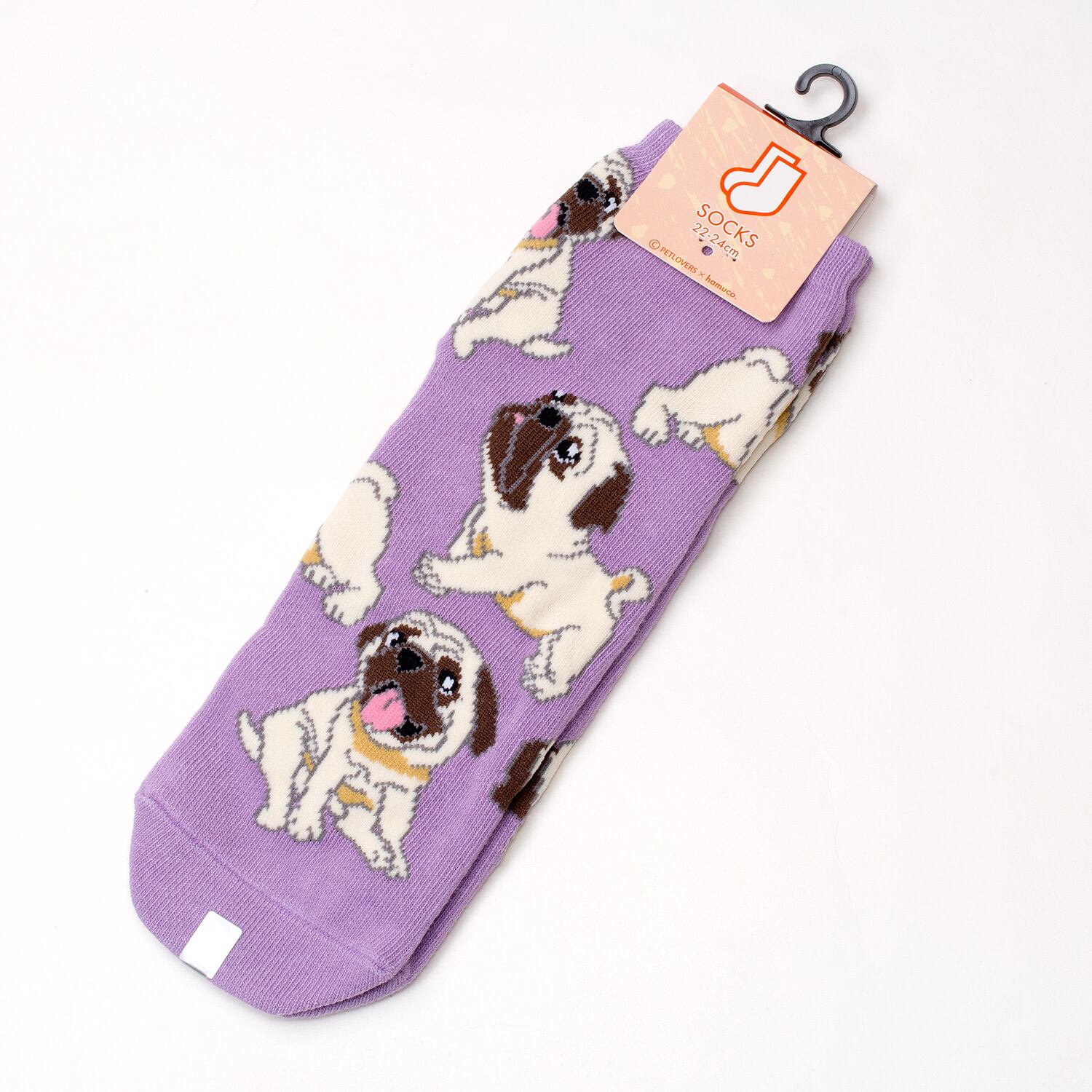 •犬種別レディースソックスのパグです。木綿糸の自然な伸び縮みでわんこの表情が変わる可愛く楽しい靴下。素材構成によりたっぷり優しく足を包み込む感覚の靴下です。パグファンへのプレゼントにも最高。