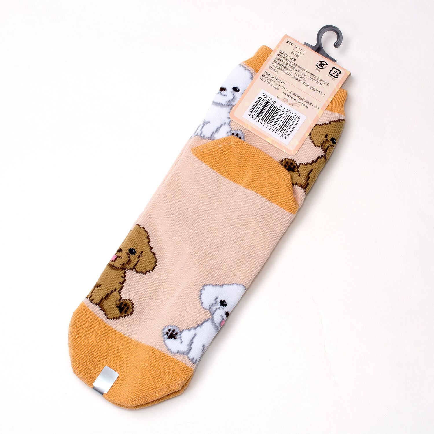 •犬種別レディースソックスのトイプードルです。木綿糸の自然な伸び縮みでわんこの表情が変わる可愛く楽しい靴下。素材構成によりたっぷり優しく足を包み込む感覚の靴下です。トイプードルファンへのプレゼントにも最高。