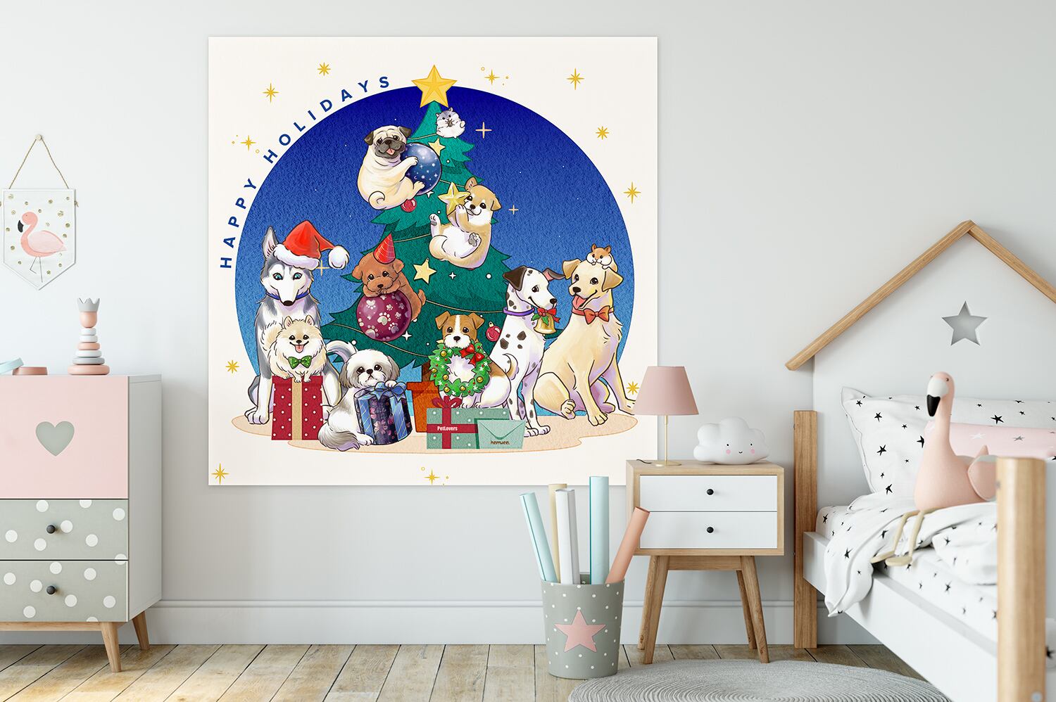 わんこ愛いっぱいのクリスマスタペストリーが楽しさと幸せいっぱいのパーティーを演出します。
