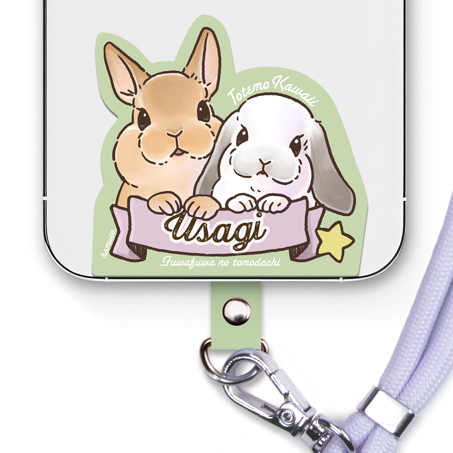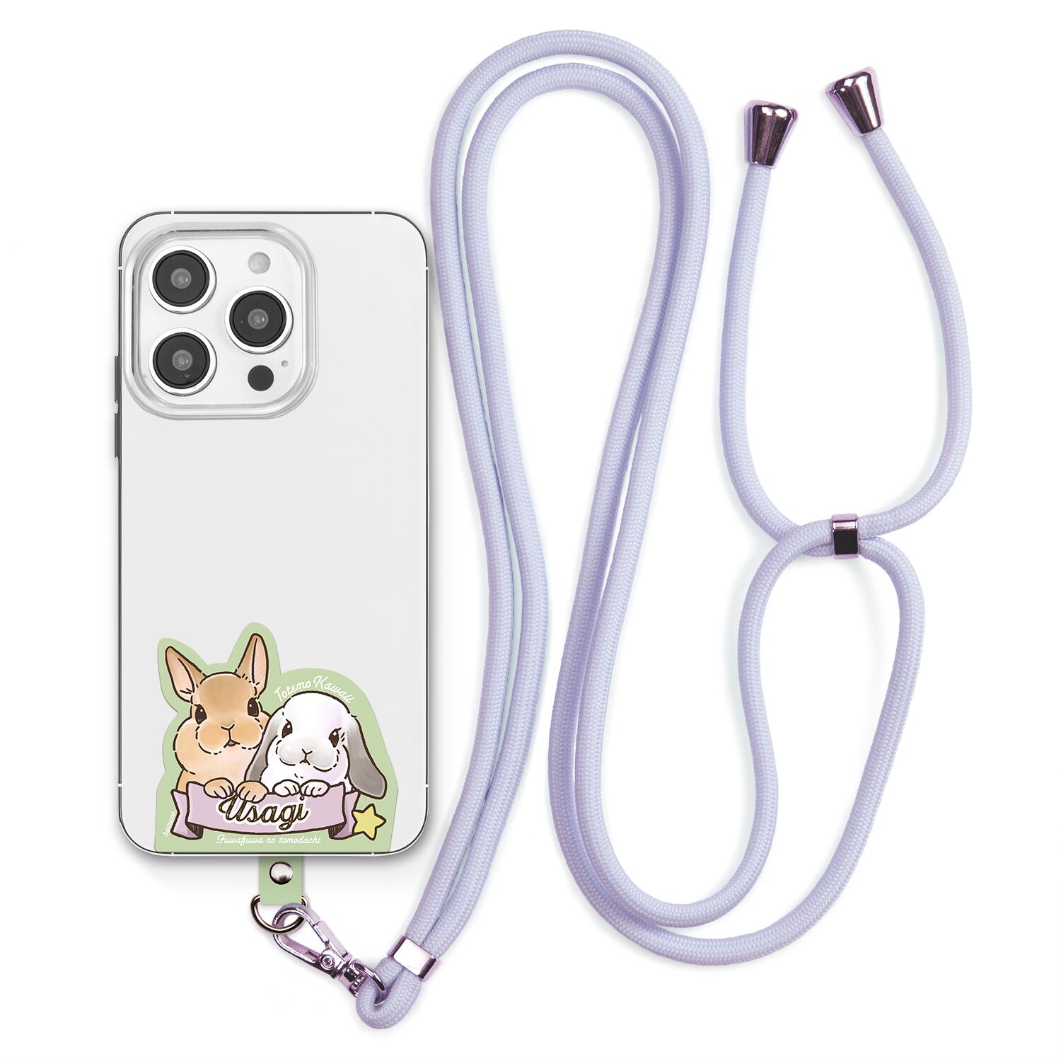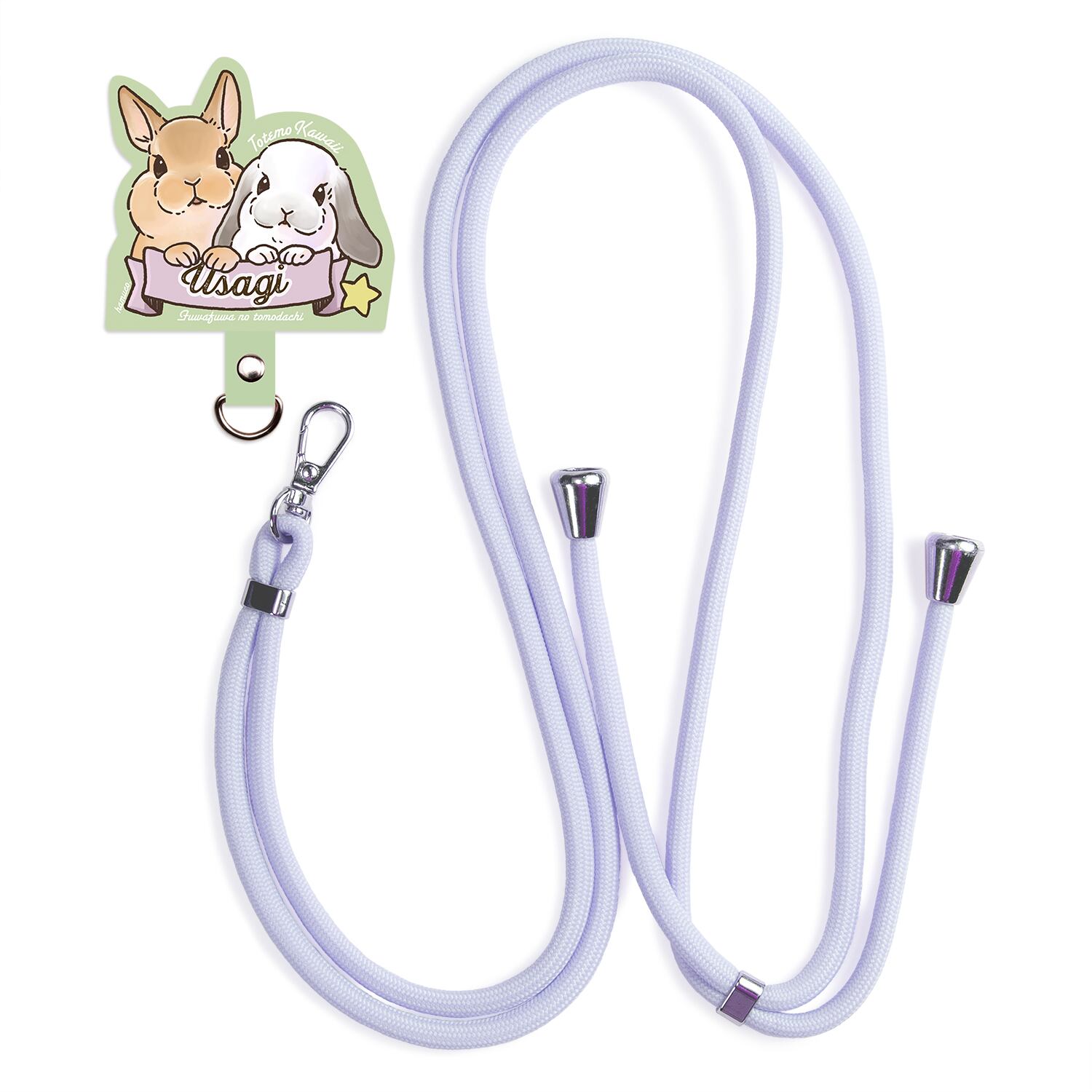 うさぎ 【笑顔が楽しく可愛い動物イラスト】 スマホ ショルダーストラップ ストラップ ホルダー 各種ストラップ対応 ライトブルー 丸紐 SH-300B
