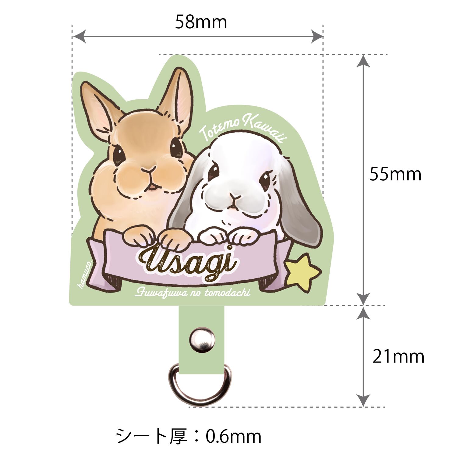 うさぎ 【笑顔が楽しく可愛い動物イラスト】 スマホ ショルダーストラップ ストラップ ホルダー 各種ストラップ対応 ピーチピンク 丸紐 SH-300P