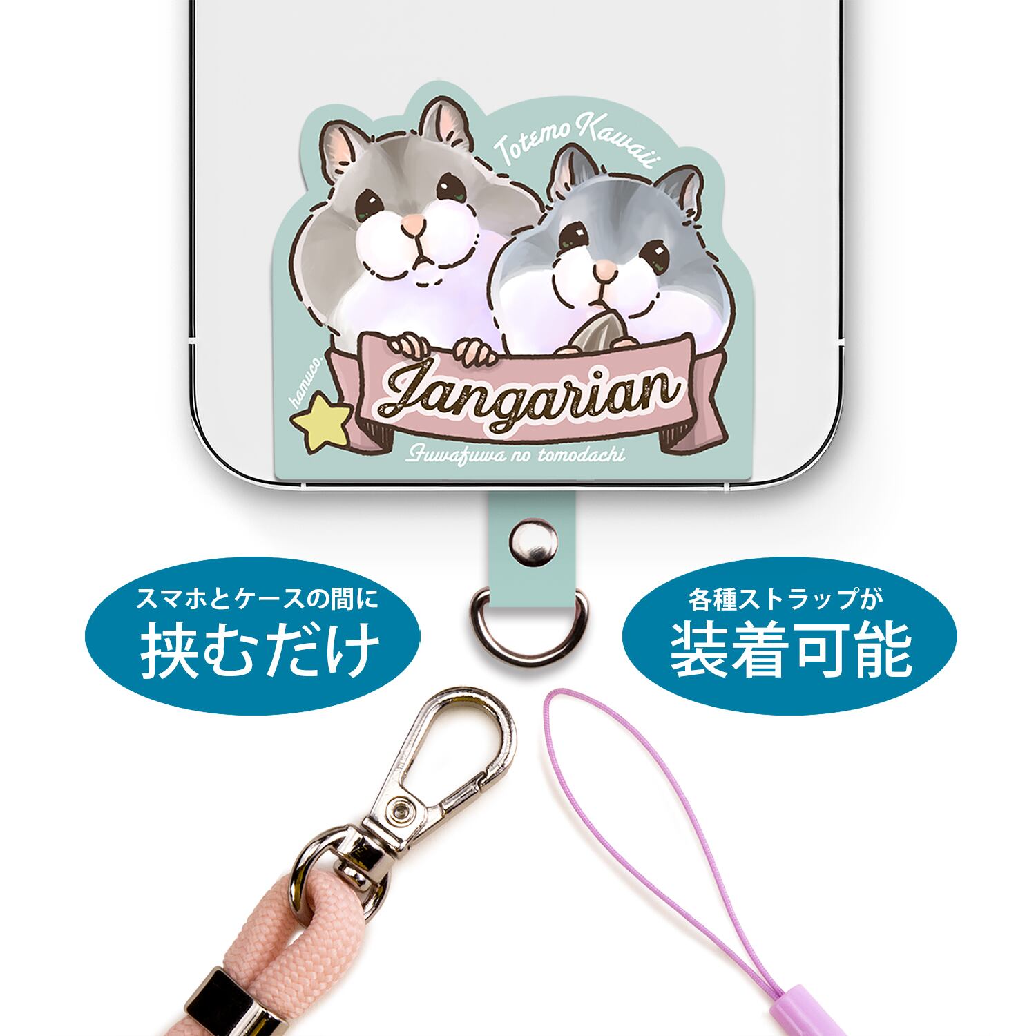 ジャンガリアン ハムスター 【笑顔が楽しく可愛い動物イラスト】 スマホ ストラップ ホルダー ストラップホールシート ショルダーストラップ用 各種ストラップ対応 SH-2000
