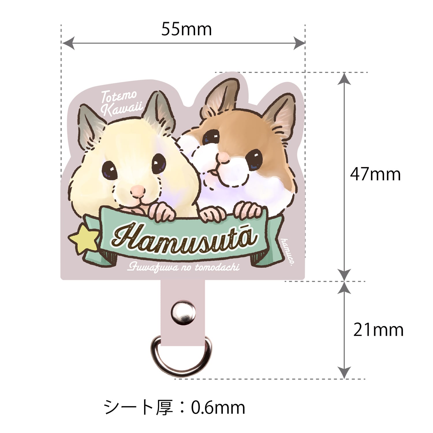 ハムスター 【笑顔が楽しく可愛い動物イラスト】 スマホ ショルダーストラップ ストラップ ホルダー 各種ストラップ対応 ライトブルー 丸紐 SH-100B