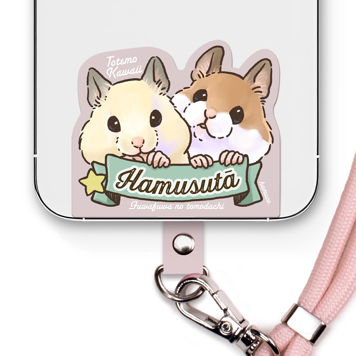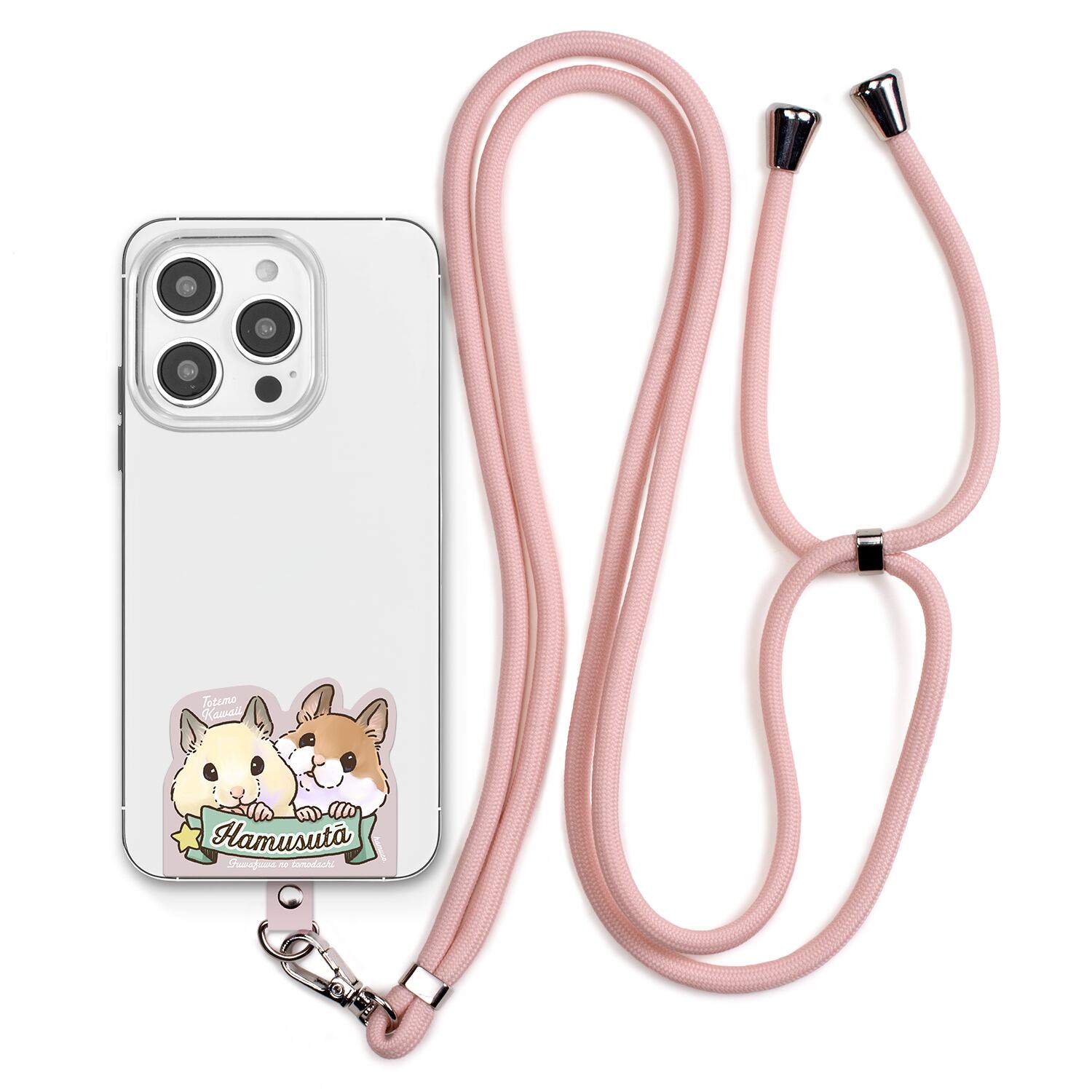 ハムスター 【笑顔が楽しく可愛い動物イラスト】 スマホ ショルダーストラップ ストラップ ホルダー 各種ストラップ対応 ピーチピンク 丸紐 SH-100P