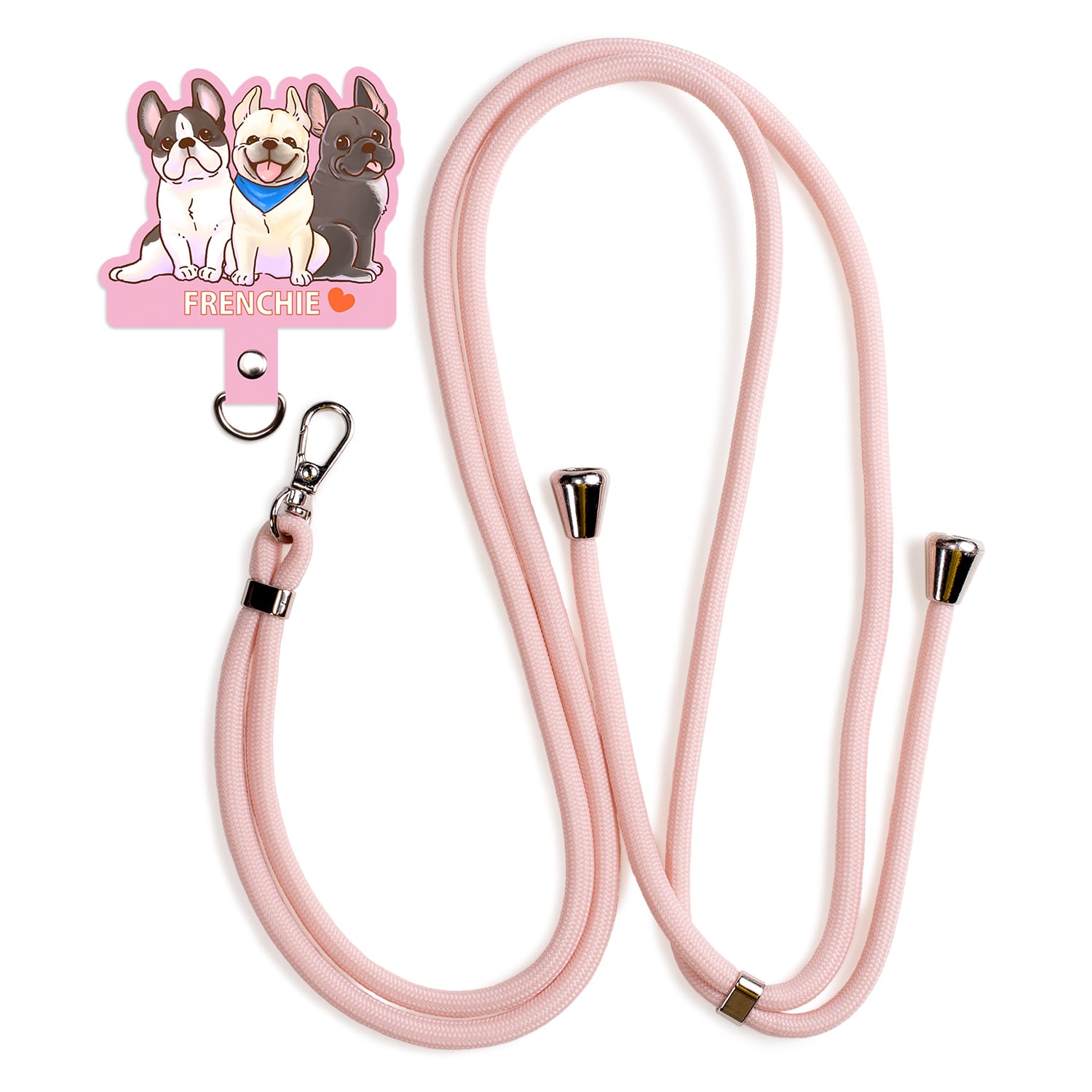 フレンチブルドッグ 【笑顔が楽しく可愛いわんこイラスト】 スマホ ショルダーストラップ ストラップ ホルダー 各種ストラップ対応 ピーチピンク 丸紐 SE-150P