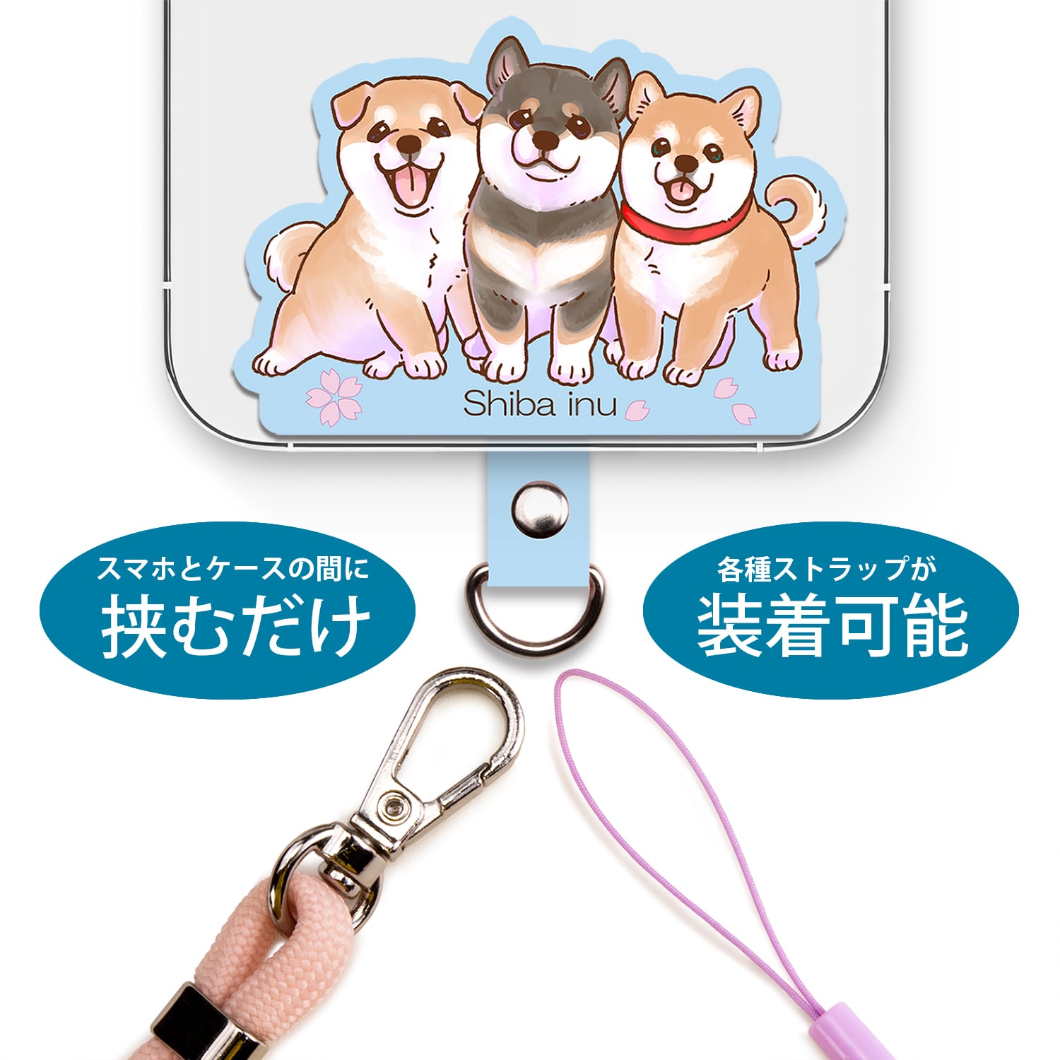 柴犬 【笑顔が楽しく可愛いわんこイラスト】 スマホ ストラップ ホルダー ストラップホールシート ショルダーストラップ用 各種ストラップ対応 SE-4000