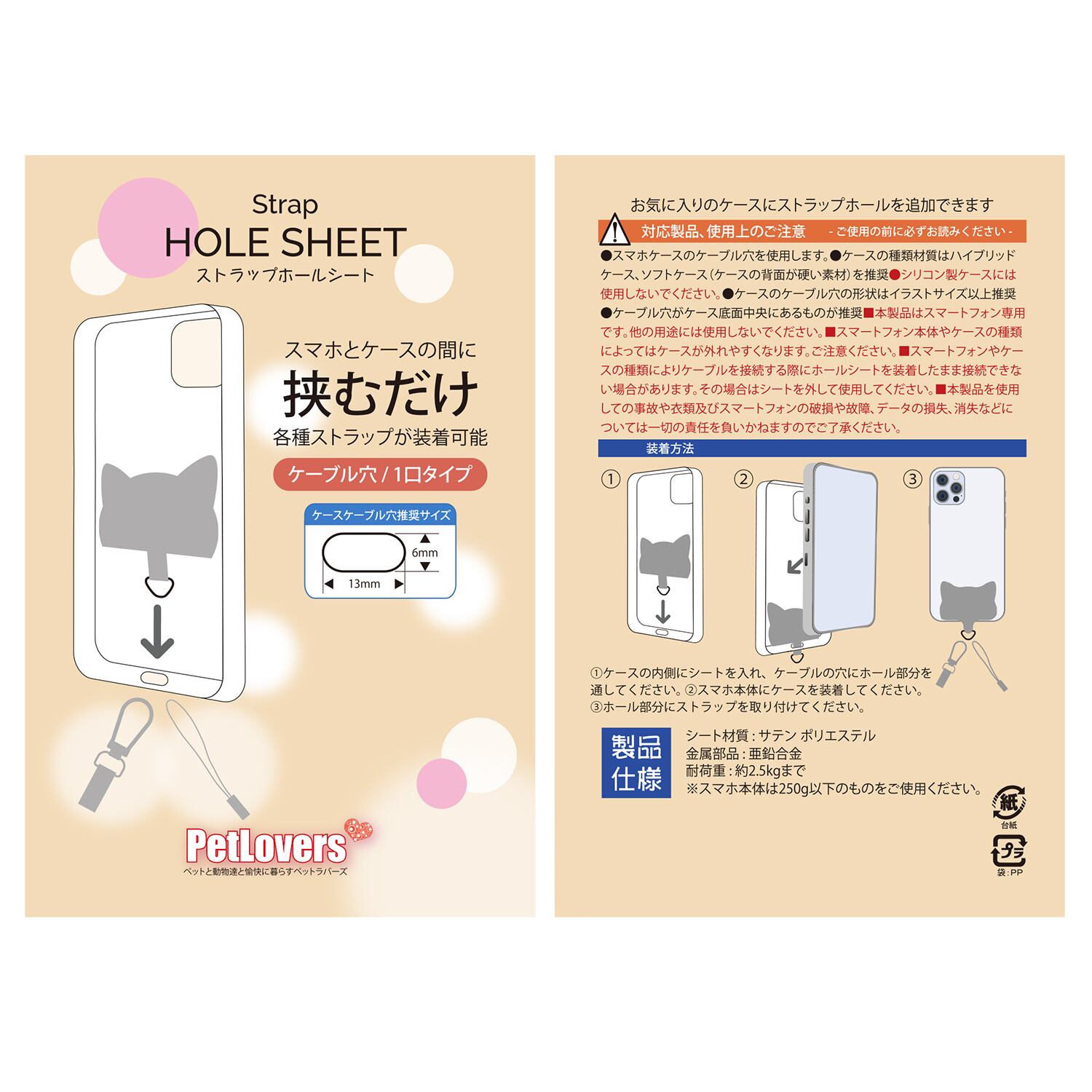 ケースにストラップホールがなくても、ストラップホールシートをスマートフォンとケースの間に挟むだけで使用でき、取り外しも簡単です。