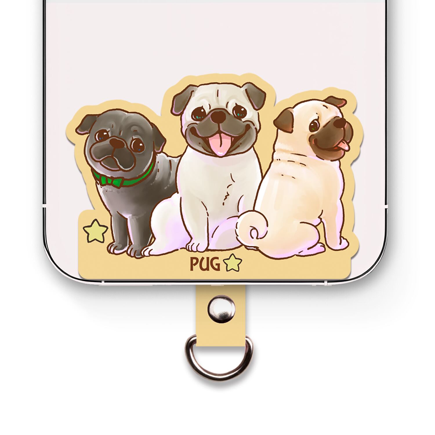 パグ 【笑顔が楽しく可愛いわんこイラスト】 スマホ ストラップ ホルダー ストラップホールシート ショルダーストラップ用 各種ストラップ対応 SE-1000